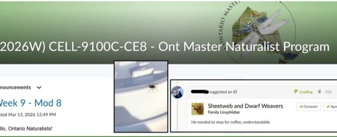 OFNC member takes the Ontario Master Naturalist Program by Bev McBride I had my assignment. Find an insect or other invertebrate and describe it in a field journal. It was early March. No problem. There were plenty in the basement. But no, I wanted to find one outside. I hoped it would be alive. I knew they were out there, but how cleverly would they be hiding? It wouldn’t be like May, when you just stand there and numerous insects [...]