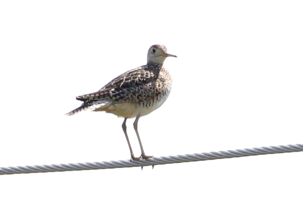 Baird’s Sandpiper, Carleton Place storm pond, by Janet McCullough. The easiest way to distinguish a Baird’s from the more common semipalmated sandpiper is to notice how the folded wingtips extend well beyond the white tail feathers.