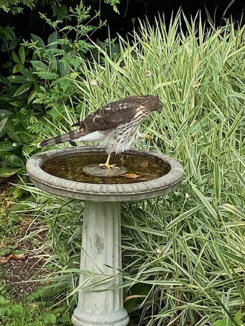 Hermit Thrush, Ottawa, by Richie Allen. This is a forest bird – what is it doing in an urban yard? Proving the value of a water feature to migrating birds and non-migrating naturalists. Many species that won’t come to a feeder will stop for water, especially moving water.
